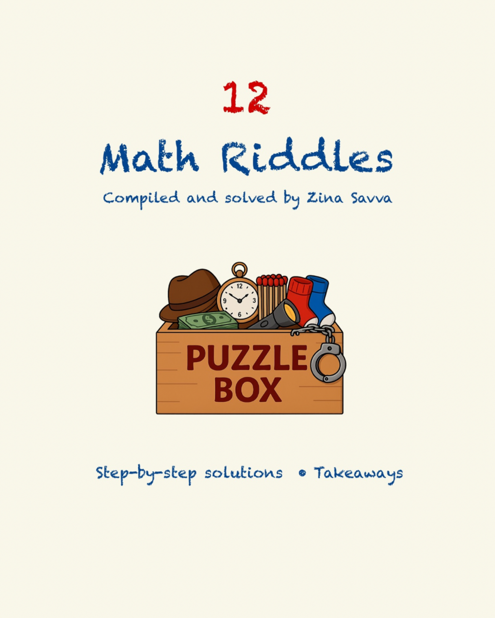 A collection of 12 classic and mind-bending math riddles, each explained step-by-step with clear visuals and takeaways.